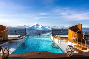 Venture’s design balances adventure with serenity: soundproofed suites, panoramic observation lounges, and the Seabourn Square social hub create spaces that invite reflection. Add in the Expedition Lounge — part bar, part basecamp — and you have intellectual luxury at its most tactile.